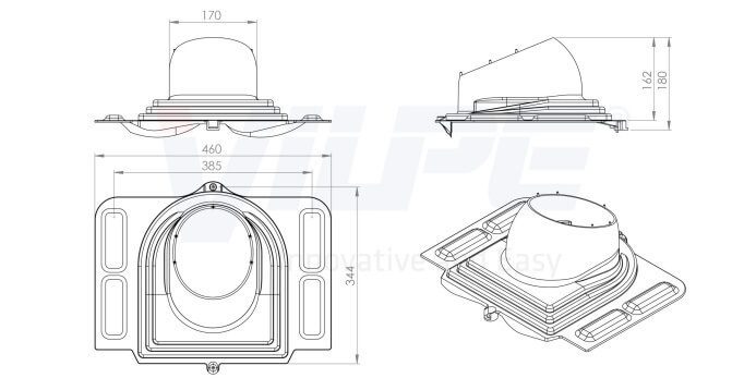 - Комплект: проходной элемент, резиновый уплотнитель, кольцо гидрозатвора, герметик на безуксусной основе, шаблон, монтажная инструкция, 2 набора крепежа.