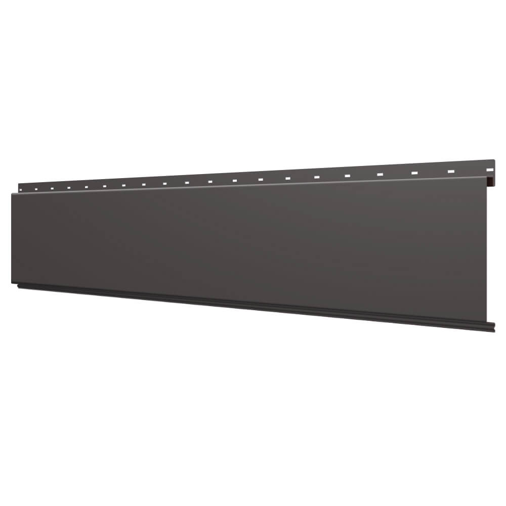 Линеарная потолочно-стеновая панель ГЛАДКАЯ цвет RAL8019 Темный Шоколад применяется в качестве софитов для подшивы крыши, наружной и внутренней отделки потолков, стен, фронтонов фасада дома в Великом Новгороде.