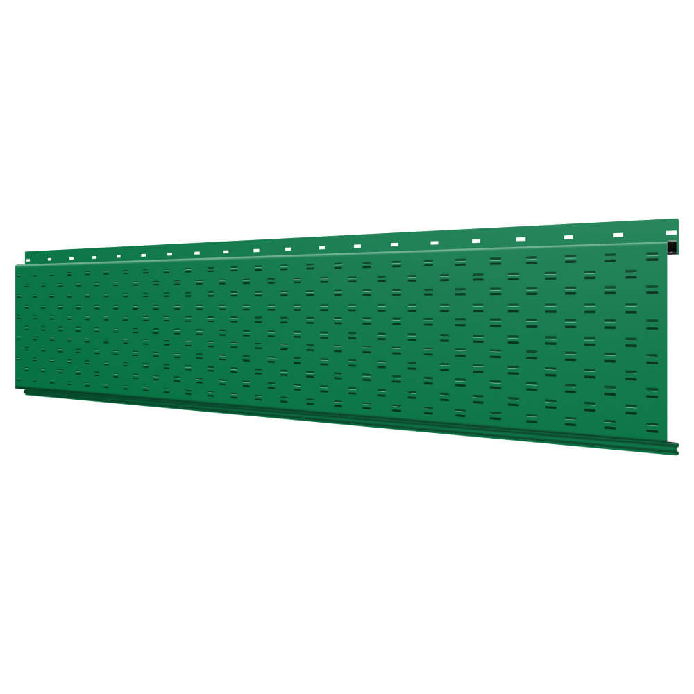 Линеарная потолочно-стеновая панель с ПЕРФОРАЦИЕЙ для вентиляции цвет RAL6029 Зеленая Мята применяется в качестве софитов для подшивы крыши, наружной и внутренней отделки потолков, стен, фронтонов фасада дома в Великом Новгороде.