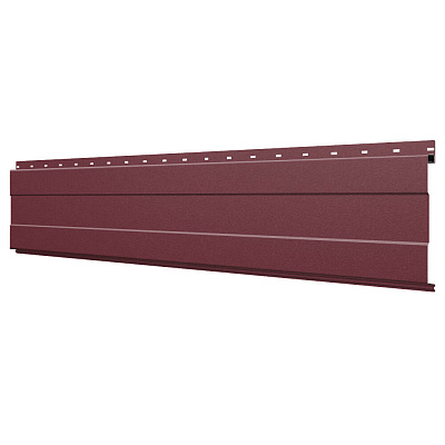 Линеарная потолочно-стеновая панель с ПОЛОСОЙ усиленная цвет RAL3005 Красное Вино Стальной Бархат применяется в качестве софитов для подшивы крыши, наружной и внутренней отделки потолков, стен, фронтонов фасада дома в Великом Новгороде.