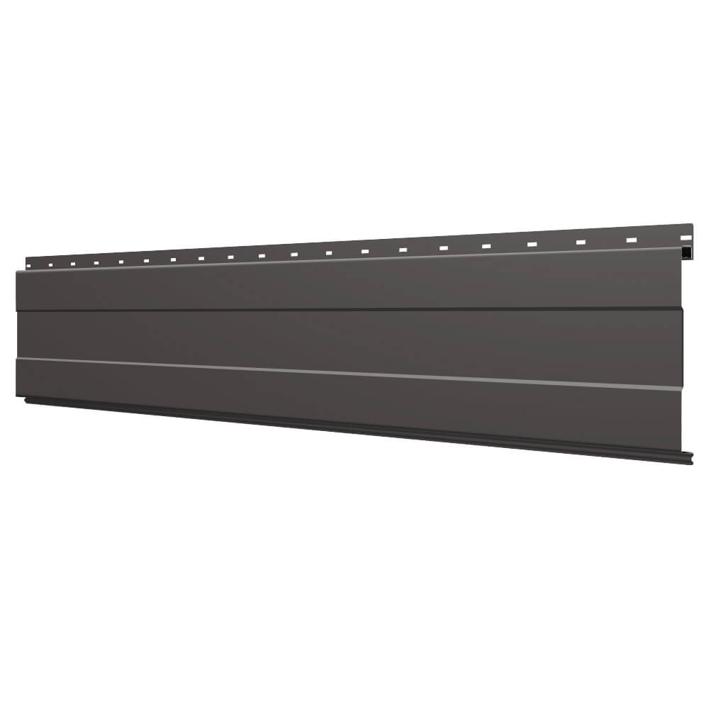 Линеарная потолочно-стеновая панель с ПОЛОСОЙ усиленная цвет RAL8019 Темный Шоколад применяется в качестве софитов для подшивы крыши, наружной и внутренней отделки потолков, стен, фронтонов фасада дома в Великом Новгороде.
