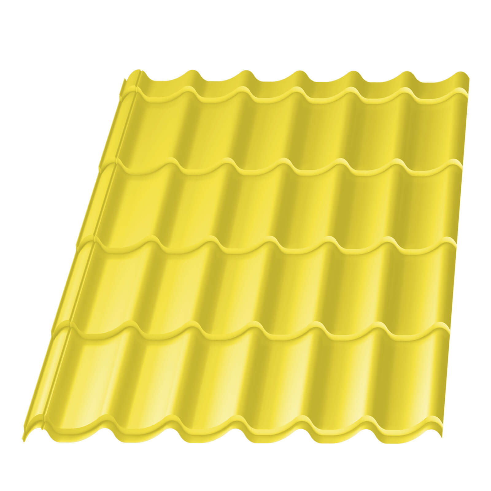 Металлическая черепица Меркурий RAL 1018 Желтый имеет профиль внешне на кровле напоминающий классическую керамическую черепицу. Меркурий — это обновленный аналог профиля металлической черепицы для кровли крыши. Форма профиля имеет богатый внешний вид напоминающий небольшие набегающие волны. Лучшие показатели герметизации сделали профиль Меркурий гарантом стабильной и долговременной службы на крышах в Великом Новгороде. Данный профиль отличается не только своим качеством, но и благородным внешним видом.