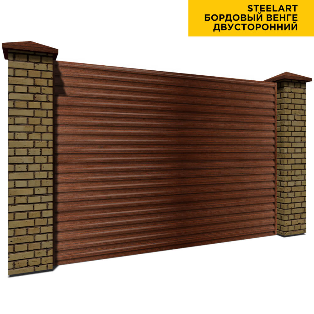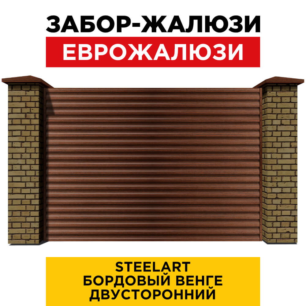Ламель Еврожалюзи металлическая S-образная, цвет под дерево Бордовый Венге SteelArt Россия двухстороннее покрытие, длина любая кратно 1см под заказ - для забора-жалюзи, беседки, перголы в Великом Новгороде