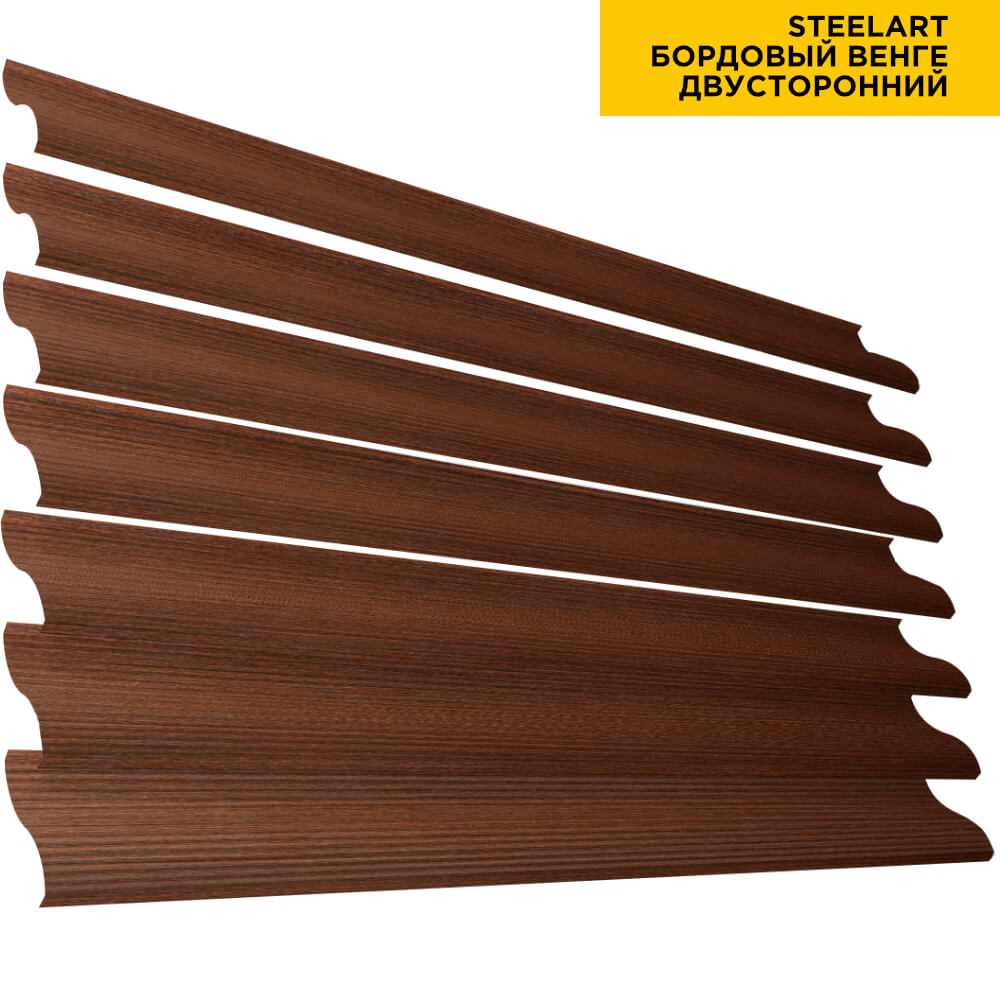 Ламель Еврожалюзи металлическая S-образная, цвет под дерево Бордовый Венге SteelArt Россия двухстороннее покрытие, длина любая кратно 1см под заказ - для забора-жалюзи, беседки, перголы в Великом Новгороде.