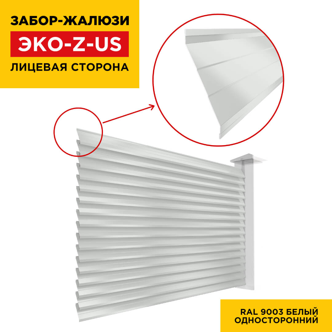 Ламель ЭКО-Z-US усиленная RAL9003 Белый для забора-жалюзи